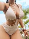 Swim SXY 1 pieza Traje de baño de una sola pieza para mujer de punto negro sólido con espalda descubierta y cordón lateral