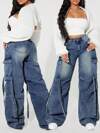 SHEIN ICON Jeans casuales de talla grande para mujer con lavado vintage, bolsillos y pierna ancha