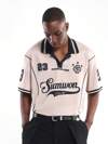 SUMWON Polo de hombre con inspiración retro de fútbol, con impresión de número y botones en la abertura, de manga corta y cuello, para uso casual en primavera y verano