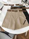 Franclia Pantalones cortos casuales y versátiles para mujer, pantalones cortos blancos de pierna ancha estilo Maillard, ropa de verano marrón para la universidad