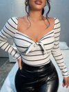 SHEIN SXY Camiseta con nudo delantero tejida de canalé de rayas
