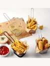 1/2/4 piezas Cesta de freír cuadrada mini, cesta de freír de acero inoxidable con mango, cesta de freír francesa de acero, cesta de malla para exhibición de alimentos fritos estilo americano, equipo de servicio de catering, alitas de pollo, utensilios de cocina y restaurante, adecuado para todo tipo de alimentos fritos en reuniones familiares, fiestas y otros eventos.