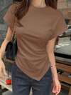 DAZY Blusa de manga corta con cintura ceñida y bajo asimétrico para mujer
