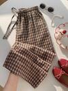 Comfortcana Pantalones casuales de mujer con estampado de cuadros y cordón en la cintura, adecuados para uso diario, primavera/verano, atuendo del Día de San Valentín, disfraz de carnaval, pantalones de estilo campestre, pantalones con estampado de cuadros marrones, pantalones de verano con estampado de cuadros