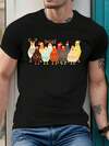 Camiseta de algodón negro divertida con gráfico de pollo blanco esponjoso, diseño casual unisex para hombres y mujeres, lavable aáquina, ropa humorística, camiseta básica de algodón de alta calidad, duradera y a