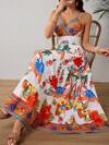 Vestido De Mujer Con Estampado Retro,Vestido Largo Con Tirantes,Vestido Con Escote En V Profundo