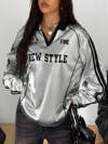 ROMWE MEN Prep Camiseta deportiva de manga larga con estampado de eslogan casual de jersey para hombres, otoño