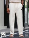 Manfinity Homme Pantalones casuales de unicolor para hombres para el transporte diario, pantalones de lino para hombres, pantalones de lino con cordón, pantalones de lino versátiles para el transporte diario, viajes, vacaciones y salidas, regalos para esposo y novio, estilo casual y sencillo, estilo urbano maduro, pantalones de lino estilo caballero británico, pantalones transpirables para hombres, otoño