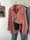 Camisa a cuadros minimalista y de moda para mujer, adecuada para otoño y primavera, también se puede usar como ropa de mujer durante la temporada navideña