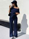 SHEIN EZwear Conjunto de top de hombros descubiertos sólido y pantalones acampanados