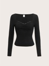 DAZY Camiseta de mujer de unicolor con cuello en forma de corazón y manga larga, ropa de mujer para el otoño