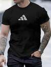 Una camiseta negra de algodón para hombres de 180g. La camiseta tiene un patrón de líneas único, de forma abstracta, estilo simple pero... Una camiseta adecuada para uso casual, deportes y combinaciones versátiles. Suelta y cómoda.