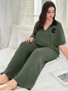 Conjunto de 2 piezas de top sin mangas y shorts de unicolor minimalista casual de talla grande