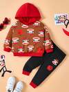 Paul Frank X SHEIN Pantalones cortos de playa con cordón en la cintura y estampado de monos, para hombres, para el verano, estilo hawaiano