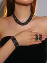 1 par de pendientes elegantes tipo colgante, 1 collar encantador, 1 brazalete con colgante en forma de gota de agua negra con incrustaciones de rhinestone - Juego de joyas de cobre para bodas y ocasiones especiales