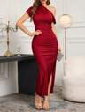 Vestido deslizante sexy con recortes y decoración de aros metálicos, estilo de malla impresa, para vacaciones