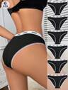6 piezas de ropa interior con diseño de letras para mujer, estilo japonés, de talle bajo, deportiva, de unicolor, sexy, transpirable y con costura invisible