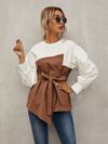 SHEIN EZwear Blusa de tejido de punto de cable con parches tejidos a mano en contraste en el cuello, estilo 2 en 1