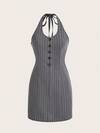 SHEIN LUNE Vestido casual de mujer con tirantes anudados y rayas de colores sin mangas