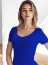 Blusa manga corta mujer cuello redondo dama ajustada casual moderna versatil basica atemporal clasica
