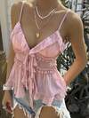 Livesso Top de tirantes con volantes y estampado floral, elegante para festivales de música, San Valentín, boda, uso casual, playa, top de camisola de gasa para mujer en verano