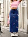 DAZY Vestido largo de mezclilla con bordados, hombros descubiertos y volantes para mujer, ideal para vacaciones de verano