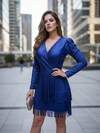 Aloruh Vestido mini de satén color albaricoque sólido con cuello de chal, diseño de manga asimétrica, elegante para ir al trabajo y salidas
