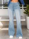 Pantalones vaqueros acampanados para mujer en azul deslavado, con bajos deshilachados y estilo casual vintage, Jeans