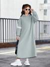 SHEIN Chica preadolescente Vestido sudadera con capucha panel en contraste de hombros caídos