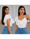 Coolane Camiseta de mujer con cuello asimétrico, parches de malla, volantes y flecos, estilo casual Y2K para conciertos de otoño, vacaciones y estilo gyaru, color rojo, ideal para Navidad