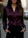 Camisa de satén de manga larga con botones y cuello para mujer, blusa elegante de poliéster para dama