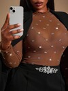 SHEIN BAE Blusa de malla transparente con cuello alto sin camiseta interior talla grande