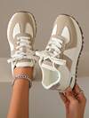Zapatos casuales de mujer con cordones de color contrastante, zapatos para caminar y fitness, de punta redonda, ligeros y cómodos, zapatillas deportivas retro para mujer