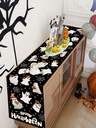1 pieza Cortina de 45x140cm con diseño de pueblo nevado, Papá Noel y muñeco de nieve en color azul - Diseño de bolsillo para barra, adecuado para decoración de cocina, dormitorio, oficina y sala de estar, material de poliéster, decoración navideña para todo el año