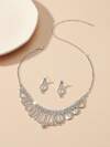 1 Set de 3: Collar de lujo ajustable con diamante de imitación, pendientes con colgante de diamante de imitación minimalista, adecuado para boda, sesión de fotos nupcial, dama de honor, baile de graduación, Día de San Valentín, Día de la Madre, uso diario, joyería de boda elegante y de moda