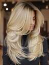 Postizos de encaje de 4x2.5 pulgadas hechos a mano para mujeres - Sintético, liso, rubio ombré con flequillo cortina, aspecto natural, agrega volumen y estilo al cabello ralo, estilo básico, fácil aplicación, sin necesidad de coser, postizo para cabello ralo