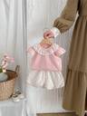 Set de 2 piezas: Sudadera con cuello de volantes con estampado de oso y perro lindo para bebé niña + Pantalones rosas con cordón casual y sueltos, para primavera/otoño