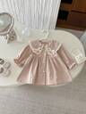 Vestido de manga larga, estilo universitario, con cuello Peter Pan calado, para niñas pequeñas, para primavera y otoño, talla grande
