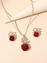 1 Set [1 Par de Aretes + 1 Anillo + 1 Pulsera + 1 Collar] Conjunto de Joyas Minimalista de Cristal con Forma de Corazón, Moda para Mujer Diario/Fiesta/Regalo para Amigos, Cumpleaños