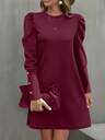 Vestido corto holgado de manga gigot de unicolor elegante para mujer de talla grande