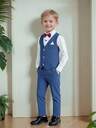 Conjunto de 4 piezas para niños, conjunto formal delgado y ajustado que incluye camisa blanca, chaleco sólido, pajarita y pantalones, atuendo casual de caballero para primavera/otoño, adecuado para bodas, vacaciones y fiestas